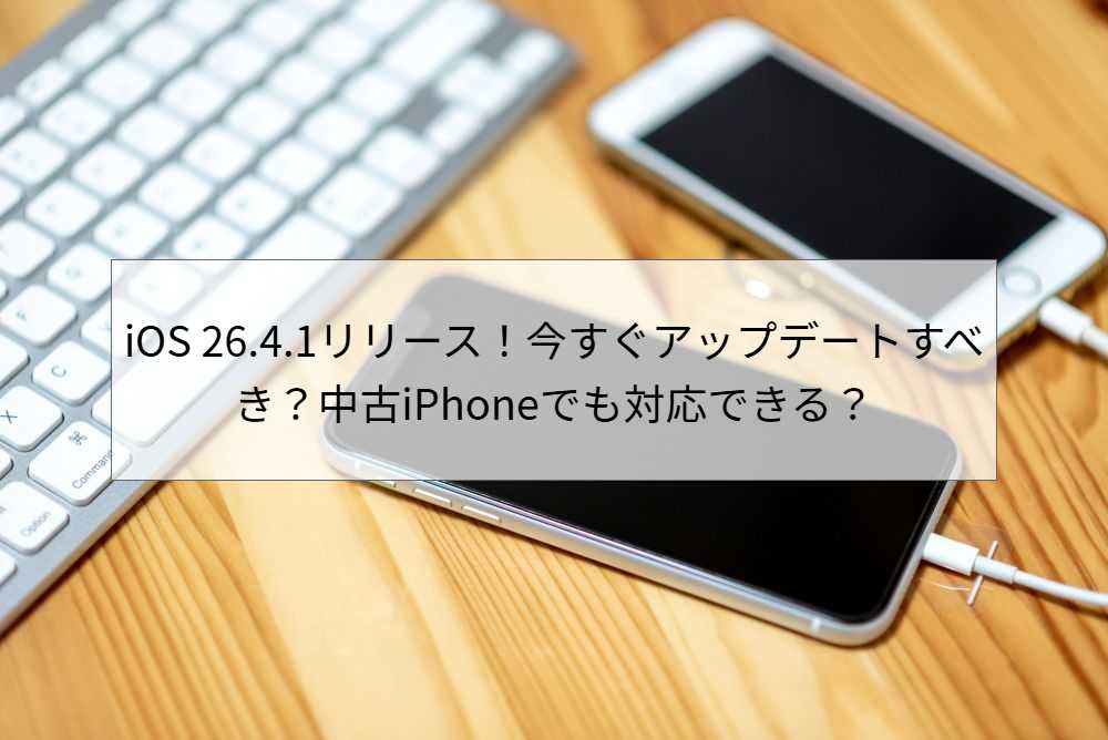 「iOSのアップデート通知が来たけど、今すぐやった方がいい?」「どんな不具合が直ったの?」「自分の中古iPhoneでも使える?」2026年4月9日(日本時間)、AppleがiOS 26.4.1をリリースしました。新機能の追加はなく、主にバグ修正と安定性向上が目的のマイナーアップデートです。本記事では、iOS 26.4.1の内容・対応機種・アップデートの必要性を、最新情報をもとにわかりやすく整理します。中古iPhoneをお使いの方、購入を検討中の方にも役立つ情報をお届けします。 iOS 26.4.1とは?基本情報まとめ iOS 26.4.1は、2026年4月8日(日本時間4月9日)にAppleがリリースしたiPhone向けのマイナーアップデートです。以下の表で基本情報を確認してください。 項目内容バージョンiOS 26.4.1 / iPadOS 26.4.1ビルド番号23E254リリース日2026年4月8日(米国時間)/ 4月9日(日本時間)対応機種iPhone 11以降(iPhone SE 第2・第3世代含む)/ 対応iPad主な内容バグ修正・安定性向上(新機能追加なし)セキュリティ修正公開CVEエントリなし(セキュリティ変更への言及なし)ファイルサイズ目安iPhone 17 Pro Maxで約671MB(小規模アップデート)次のバージョンiOS 26.5(ベータテスト中)/ iOS 27(WWDC 2026で発表予定) iOS 26.4(2026年3月24日リリース)から約2週間でのリリースというスピード感からも、iOS 26.4で発生していた不具合への迅速な対応であることがわかります。リリースノートには「このアップデートはiPhone向けの不具合の修正を提供します」とのみ記載されており、シンプルなマイナーアップデートです。 iOS 26.4.1で修正された不具合・変更点 Appleは修正内容の詳細を公表していませんが、Apple公式の更新情報・開発者フォーラム・SNSのユーザー報告から判明している修正内容をまとめました。 修正された不具合詳細修正状況iCloud同期が一部アプリで動作しないパスワードアプリを含む複数のアプリでiCloudデータが同期されない不具合✅ 修正済み音量ボタン・コントロールセンターの音量調整が反応しないiPhone SE(第3世代)等で発生。都度再起動が必要な状態だった⚠️ 一部改善(再発報告あり)プライバシー設定で「企業が管理」と誤表示「プライバシーとセキュリティ」設定で、組織に管理されていると誤って表示される✅ 修正済みApple Musicで先行リリースアルバムが再生できないリリース時刻の直後に再生しようとしてもエラーになる問題✅ 修正済みRC版からの動作のカクつき・ラグiOS 26.4のRC版から一部端末で動作が重くなっていた問題✅ 改善報告あり盗難デバイス保護の自動有効化iPadOS 26.4から26.4.1に更新すると盗難デバイス保護が自動的に有効になるℹ️ 仕様変更(意図的) ℹ️ セキュリティ修正について:iOS 26.4.1には公開CVE(脆弱性識別番号)エントリはなく、セキュリティ修正は含まれていません。セキュリティが目的なら、前バージョンのiOS 26.4(37件のセキュリティ修正含む)が重要でした。26.4にアップデートしていれば、セキュリティ面では引き続き安全です。 iOS 26.4.1は今すぐアップデートすべき? 結論から言うと、「iOS 26.4にアップデート済みの方は基本的には今すぐでなくても大丈夫ですが、対象の不具合が気になる方は早めにアップデートを」というのが2026年4月時点のスタンスです。 アップデートを急ぐべき3つのケース ⚡ 以下に該当する方はすぐにアップデートを検討してください ケース① iCloudの同期がうまくいかない(特にパスワードアプリ) iCloud経由でパスワードや写真、メモが同期されない問題が出ている場合は、iOS 26.4.1で修正されている可能性が高いです。今すぐアップデートする価値があります。 ケース② 音量ボタンやコントロールセンターが反応しない iOS 26.4で発生していた音量調整の不具合に悩まされている方は、一部改善が報告されています(ただし完全解決ではない可能性もあり)。 ケース③ まだiOS 26にアップデートしていない(iOS 18以前を使用中) iPhoneユーザーの約4分の1がまだiOS 18を使っているという報告があります。DarkSwordと呼ばれる深刻なサイバー攻撃ツールがiOS 18.4〜18.7を標的にしており、悪意あるWebサイトを見るだけで感染する危険性があります。iOS 26.4.1にアップデートすることでこのリスクを解消できます。 少し様子を見てもいい3つのケース ✅ 以下に該当する方は、急がなくても大丈夫です ケース① iOS 26.4にアップデート済みで不具合が出ていない 今回のiOS 26.4.1はセキュリティ修正を含まないため、iOS 26.4が正常に動作しているなら急いでアップデートする必要はありません。業務用端末など安定性を重視する場合は、数日様子を見てからでもOKです。 ケース② アップデート後に新たな不具合が心配 ジャーナルアプリの検索機能がiOS 26.4.1で再発したとの報告もあります。アプリへの依存度が高い方は、1〜2日ほどSNSで不具合報告がないか確認してからアップデートするのも一つの手です。 ケース③ まもなくiOS 26.5・iOS 27が控えている iOS 26.5はすでにベータテスト中で、iOS 27はWWDC 2026(2026年6月8日)での発表が予定されています。「どうせすぐ新しいバージョ